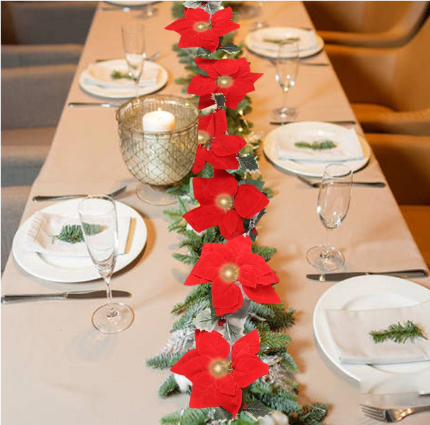 ประกอบด้วยดอกไม้สีแดง 10 ชิ้น, ฮอลลี่เบอร์รี่ 9 ชิ้น + ใบสีเขียว 9 ชิ้น ใช้ในร่มกลางแจ้งคริสต์มาสงานแต่งงานประตูเตาผิงชิ้นงานชิ้นเอกเทศกาลและงานเลี้ยงอาหารค่ำเป็นพวงมาลัยแขวนตกแต่งระเบียงสวนงานแต่งงานโต๊ะชุดบานสวิงราวบันไดร้านอาหารสำนักงานและสถานที่อื่น ๆ เพื่อเพิ่ม บรรยากาศ