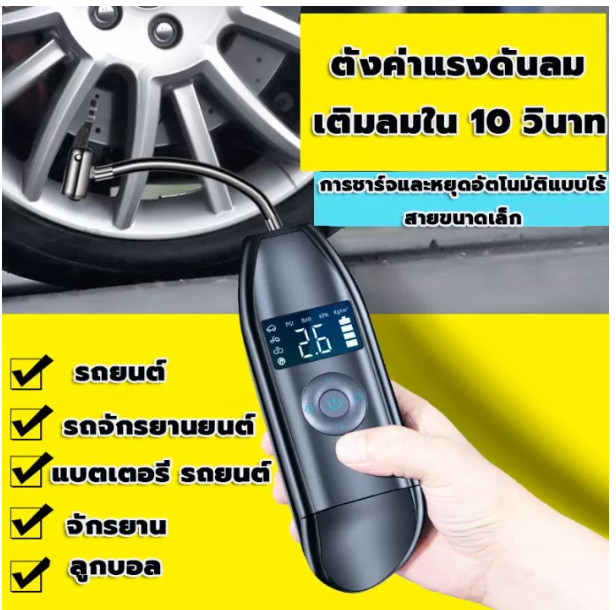 เครื่องปั๊มยางรถยนต์ที่ออกแบบด้วยมือจับแบบ humanized กว้างเหมาะสำหรับรถยนต์ จักรยาน รถจักรยานยนต์ รถ SUV รถเอทีวี และรถบรรทุก รวมทั้งอุปกรณ์กีฬา