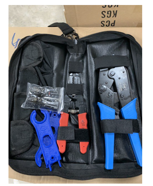 คีมย้ำ MC4 connector แผงโซล่าเซลล์คีมย้ำ MC4 Crimping Tool สำหรับข้อต่อสายโซล่าเซลล์สามารถย้ำ สายไฟขนาด 2.5 / 4 / 6 มิลลิเมตรMc4 tool ชุดคัมเข้าหัว mc4 เหมาะสำหรับช่างโซล่าเซลล์ หรทอผู้ที่จะติดตั้งโซล่าเซลล์ 1 ชุดประกอบด้วย 1.คีมเข้าหัว mc4 2.คีมปลอกสาย pv-1F 3.ประแจขันหัว mc4 1 คู่ 4. Mc4 1คู่ 6.กระเป๋าสำหรับเก็บอุปกรณ์ทั้งหมดFunction: crimping
