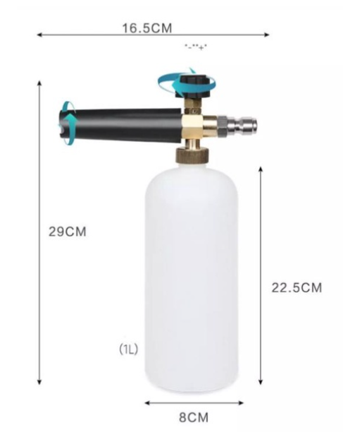 หัวฉีดโฟมสำหรับงานหนักนี้ยึดติดกับเครื่องฉีดน้ำแรงดันของคุณโดยตรง ใช้เป็น Pre-Wash Tool ผสมสารเคมีทำความสะอาดกับการไหลของน้ำเพื่อสร้างโฟมหนาที่ยึดติดกับรถ การทำให้สิ่งสกปรกและสิ่งสกปรกอ่อนตัวลงและยกออกจากพื้นผิวยานพาหนะโฟมจะถูกลบออกด้วยเครื่องฉีดน้ำแรงดันหรือท่อ กระบวนการนี้จะกำจัดสิ่งสกปรกและกรวดที่เป็นอันตรายส่วนใหญ่ซึ่งทำให้เกิดการหมุนวนบนงานสีระหว่างการทำความสะอาด