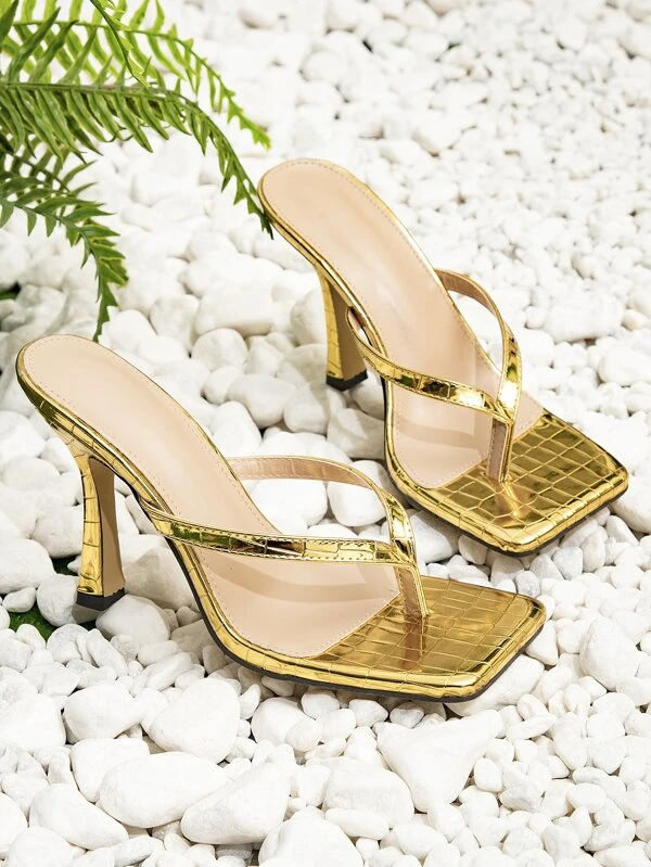 รองเท้าแตะThong เมทัลลิค ลายนูนจระเข้ l-79