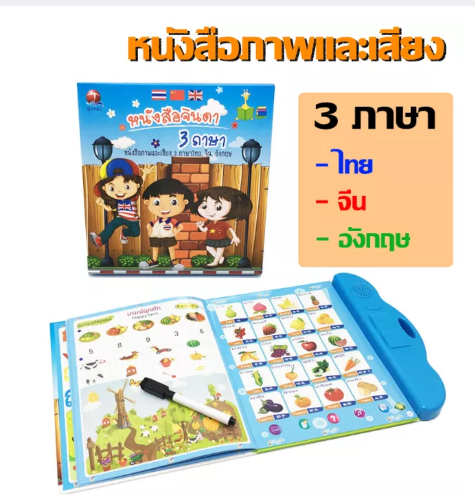 TOY27-หนังสือจินดาสินค้าพร้อมส่ง หนังสือพูดได้ หนังสือสอนภาษาเด็ก E-Book3ภาษา TH CN EN หนังสือสร้าง IQ&EQ หนังสือสะกดคำ ไทย จีน อังกฤษ