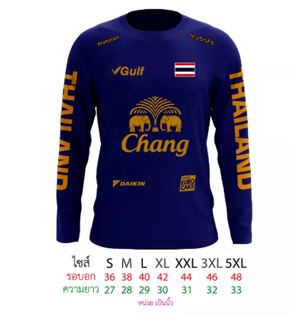 ข้อมูลเฉพาะของ เสื้อแขนยาว เสื้อกีฬา สกรีนช้าง ไทยแลนด์