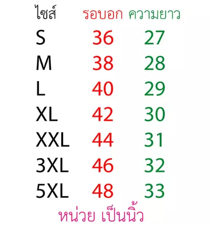 ไซส์ XL ขนาด รอบ อก 42 นิ้ว