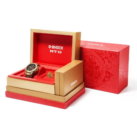 G-Shock watches in gold and red colorways have become an annual tradition in China and we’ve seen the progression of these Chinese New Year Zodiac editions to more upscale metallic models. The previous MTG-B1000CX-4A for the Year of the Tiger was the first to use an MT-G watch as the base, and Casio has chosen the MT-G line once again to celebrate the Year of the Rabbit with the G-Shock MTG-B3000CX-9A.